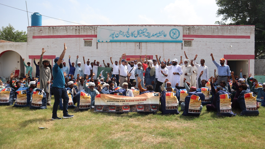橙線運(yùn)維項(xiàng)目所處的旁遮普省西南腹地木爾坦(Multan)地區(qū)是巴基斯坦受災(zāi)最嚴(yán)重的地區(qū)之一,9月初,洪水沖垮了大部分村莊的道路與房屋,農(nóng)田被毀,村民們極度缺少食物及基本生活物資。了解到這一情況后,北方國(guó)際聯(lián)合廣州地鐵立即組織采購(gòu)了米面、糧油、藥品、生活用品等救災(zāi)物資。
