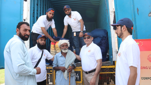 考慮到災(zāi)情期間交通不便,為了確保運(yùn)輸時(shí)效,項(xiàng)目組成立了由21人組成的運(yùn)輸保障志愿小分隊(duì)。9月6日,志愿小分隊(duì)連夜驅(qū)車(chē)400公里趕往災(zāi)區(qū),親手將救災(zāi)物品免費(fèi)發(fā)放到當(dāng)?shù)刎毨転?zāi)民眾手中,極大鼓舞了當(dāng)?shù)孛癖娍箵艉闉?zāi)的士氣。“無(wú)論遇到什么困難,中國(guó)總是第一個(gè)愿意幫助巴基斯坦的國(guó)家。感謝中國(guó)公司給予我們的支持與幫助,中巴友誼萬(wàn)歲!”當(dāng)?shù)鼐用窦娂姳硎靖兄x。