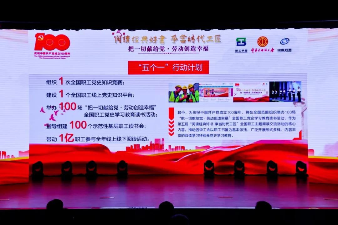 陳剛指出,持續(xù)在廣大職工中開展主題閱讀活動(dòng),是工會(huì)組織貫徹落實(shí)習(xí)近平總書記關(guān)于“要提倡多讀書,建設(shè)書香社會(huì),不斷提升人民思想境界、增強(qiáng)人民精神力量”要求的具體行動(dòng)。今年是中國共產(chǎn)黨成立100周年,黨中央要求在全社會(huì)開展黨史、新中國史、改革開放史、社會(huì)主義發(fā)展史宣傳教育。深入開展職工主題閱讀活動(dòng),并將之與黨史學(xué)習(xí)教育緊密結(jié)合,對于教育廣大職工緊跟共產(chǎn)黨、奮進(jìn)新時(shí)代,充分調(diào)動(dòng)起億萬職工投身全面建設(shè)社會(huì)主義現(xiàn)代化國家新征程的熱情,具有十分重要的意義和作用。 陳剛強(qiáng)調(diào),要聚焦思想政治引領(lǐng),深入開展職工閱讀活動(dòng),與開展“中國夢·勞動(dòng)美--永遠(yuǎn)跟黨走 奮進(jìn)新征程”主題教育活動(dòng)有機(jī)結(jié)合,引導(dǎo)廣大職工堅(jiān)定不移聽黨話、跟黨走。要把開展職工閱讀活動(dòng)作為深化產(chǎn)業(yè)工人隊(duì)伍建設(shè)改革、提高職工整體素質(zhì)的重要途徑,培養(yǎng)職工良好的閱讀學(xué)習(xí)習(xí)慣,造就更多高素質(zhì)技術(shù)技能人才、能工巧匠、大國工匠。要聚合平臺陣地優(yōu)勢,推動(dòng)職工書屋與工人文化宮、職工服務(wù)中心等工會(huì)服務(wù)場所及網(wǎng)絡(luò)平臺陣地融合發(fā)展,堅(jiān)持職工為本、貼近基層,突出公益性、服務(wù)性,實(shí)現(xiàn)創(chuàng)新升級,不斷激發(fā)活力,打造億萬職工文化家園。要引導(dǎo)職工求知善讀,博學(xué)精進(jìn),勵(lì)學(xué)敦行,共同譜寫勞動(dòng)光榮的華彩樂章,匯聚團(tuán)結(jié)奮進(jìn)的強(qiáng)大正能量。