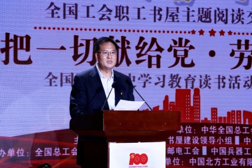 活動(dòng)由全總宣教部、中國國防郵電工會(huì)、中國兵器工業(yè)集團(tuán)有限公司黨群工作部、中國工人出版社共同承辦,中國北方工業(yè)有限公司協(xié)辦。來自中華全國總工會(huì)、全國工會(huì)職工書屋建設(shè)領(lǐng)導(dǎo)小組成員、部分全國工會(huì)職工書屋公益代言人,各全國產(chǎn)業(yè)工會(huì)、全總各部門負(fù)責(zé)同志,部分省市總工會(huì)副主席、宣教部長,兵器工業(yè)集團(tuán)一線勞模工匠、職工代表等參加活動(dòng)。